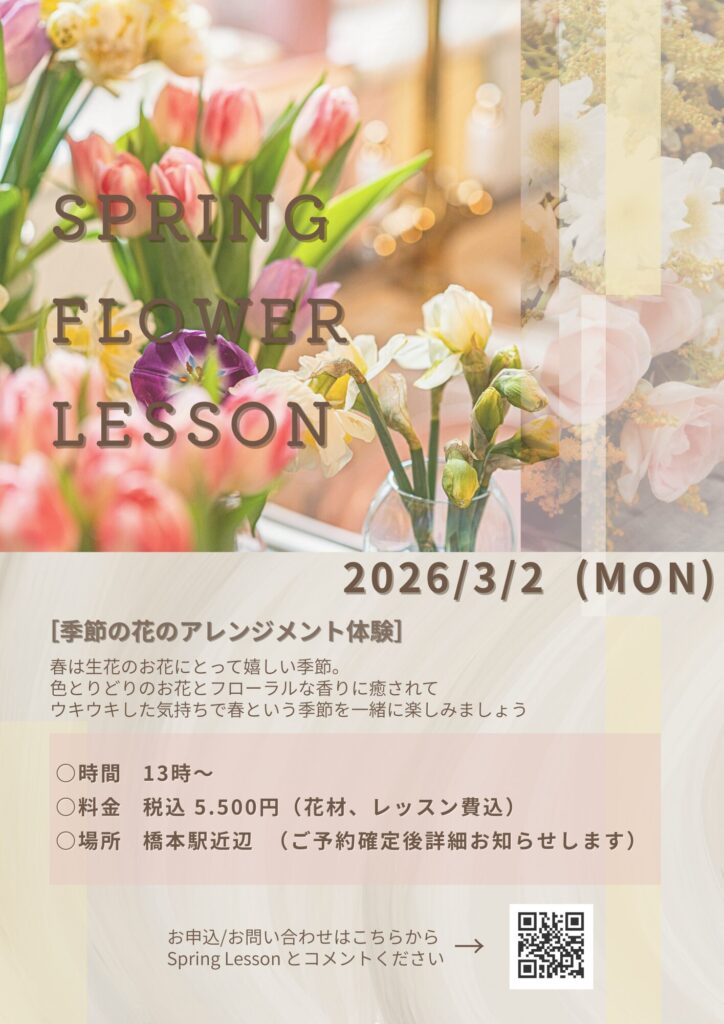 不定期でやらせていただいている季節の生花レッスンのお知らせです。
